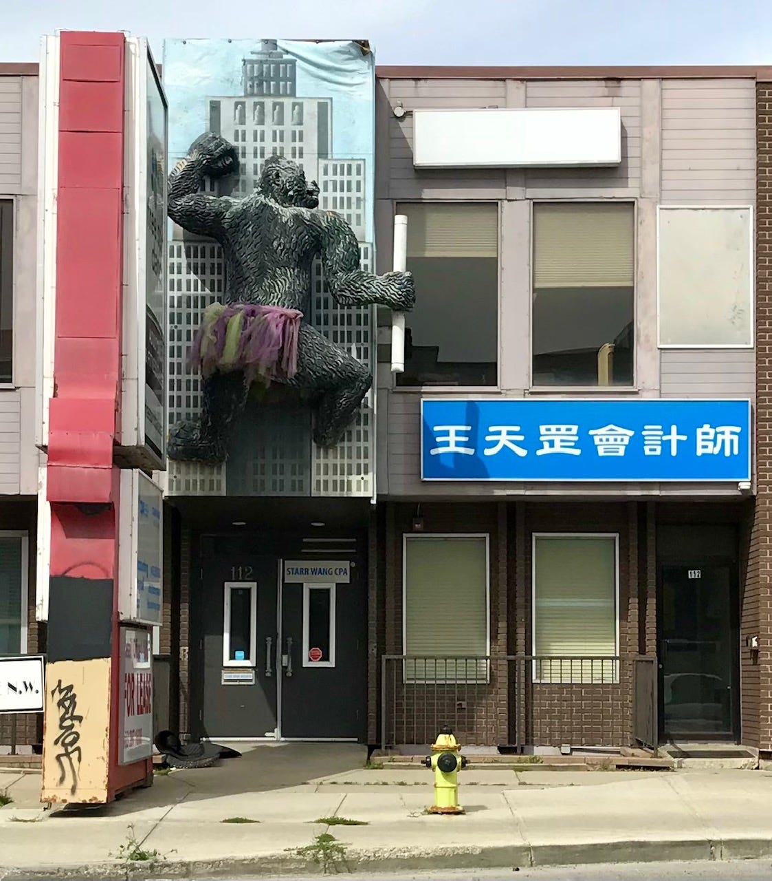 I just noticed the tattered tutu on this gorilla. Anyone else wondering about this shop on 16th avenue and Centre St., Calgary, Canada?